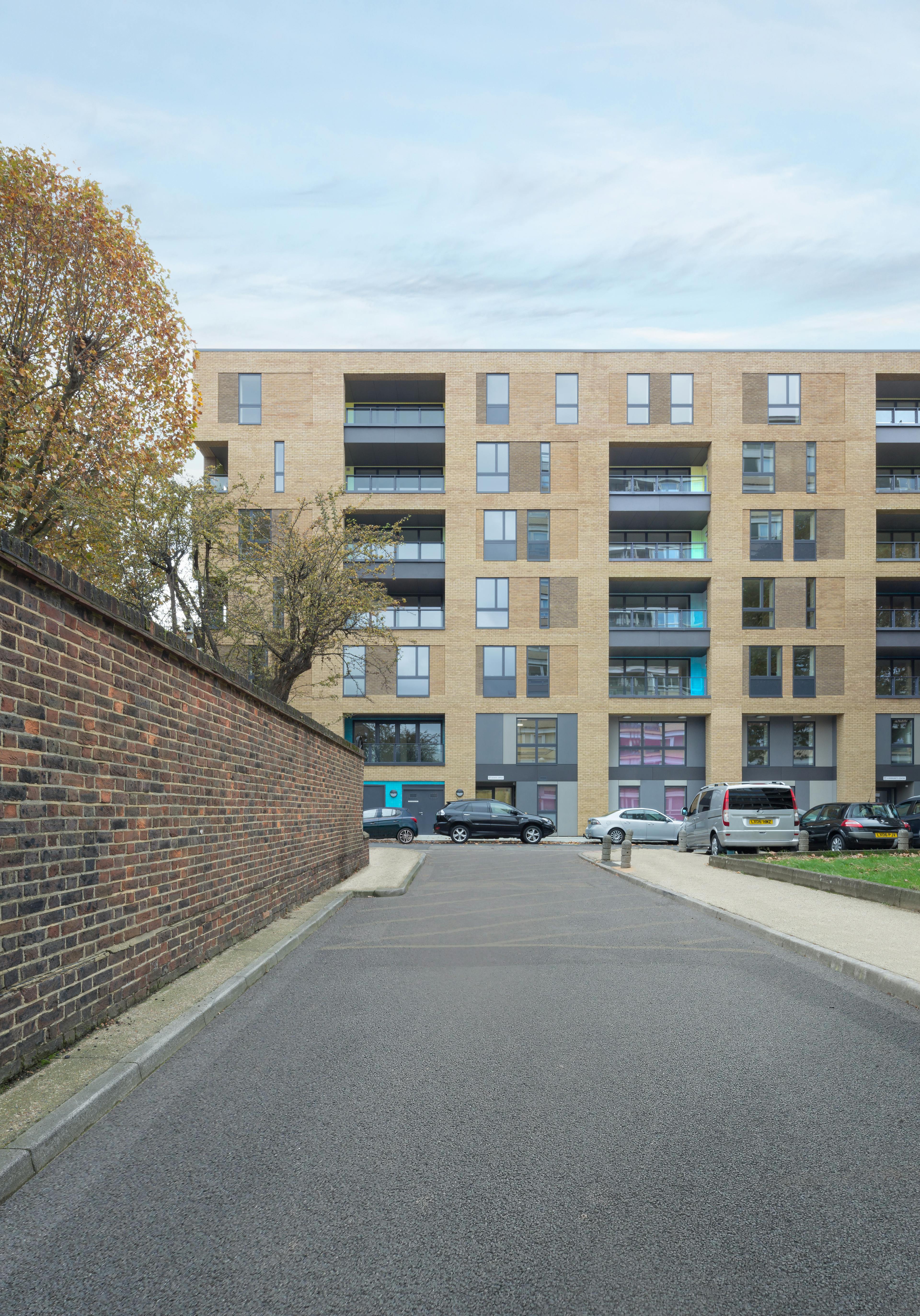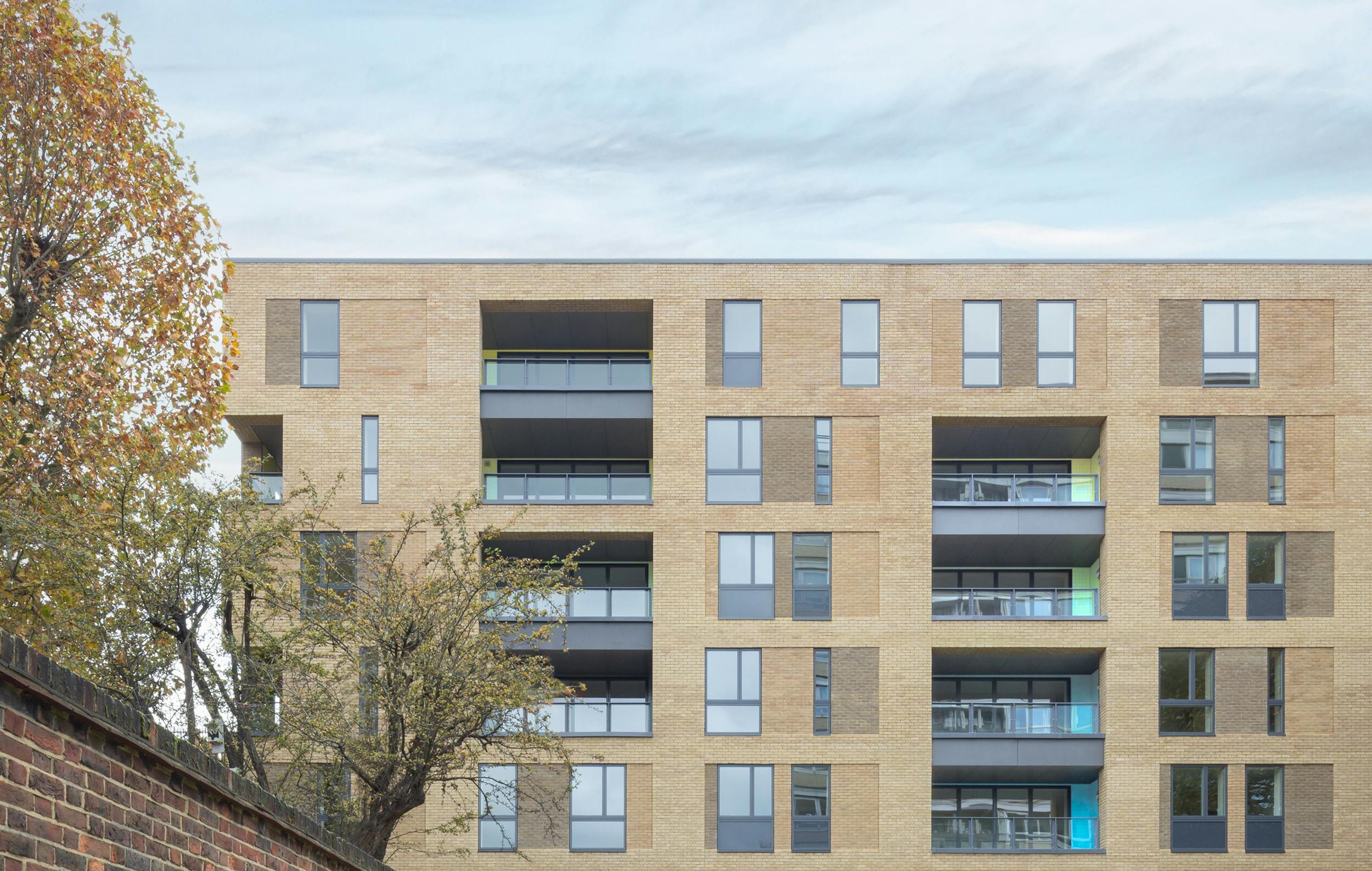 The residential and public entrances were located separately, providing each with its own sense of place and arrival. The design included a number of interlocking apartments arranged over two stories, providing natural light to both sides of the homes whilst minimizing the number of corridors. Each dwelling was provided with its own balcony, and was expressed individually within the brick elevations to provide a sense of identity and individuality.